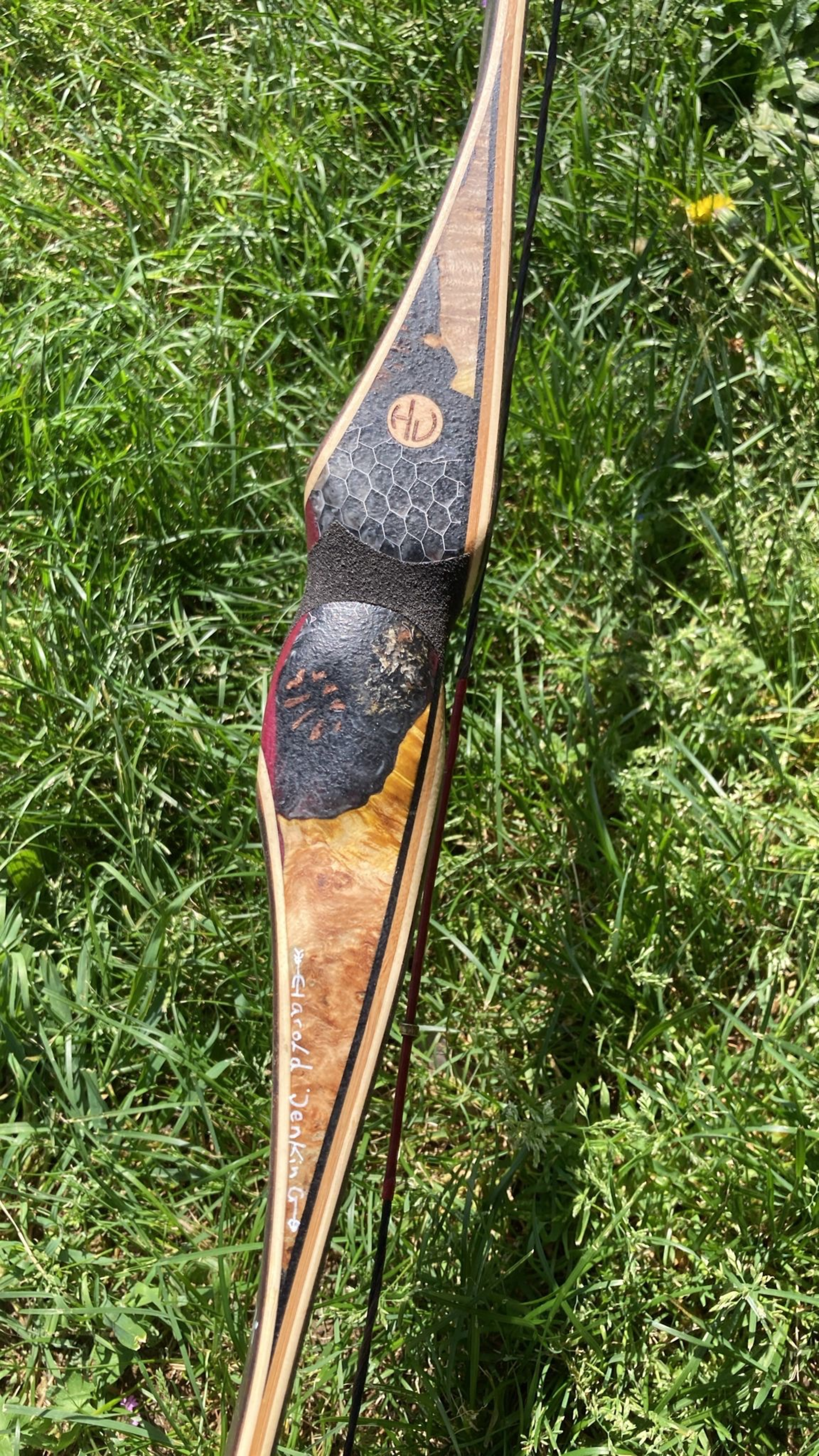 Bois d’ébène, nid d’abeille sur la poignée.