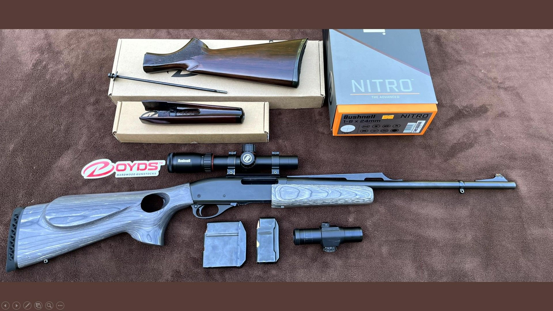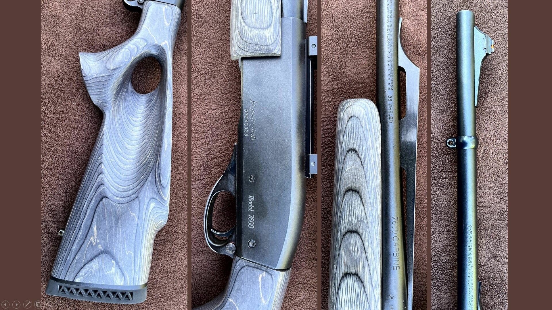 CARABINE A POMPE REMINGTON 7600 CALIBRE 35 WHELEN – CROSSE TROU DE POUCE GAUCHER – 2 CHARGEURS – LUNETTE – POINT ROUGE – CROSSE BOIS