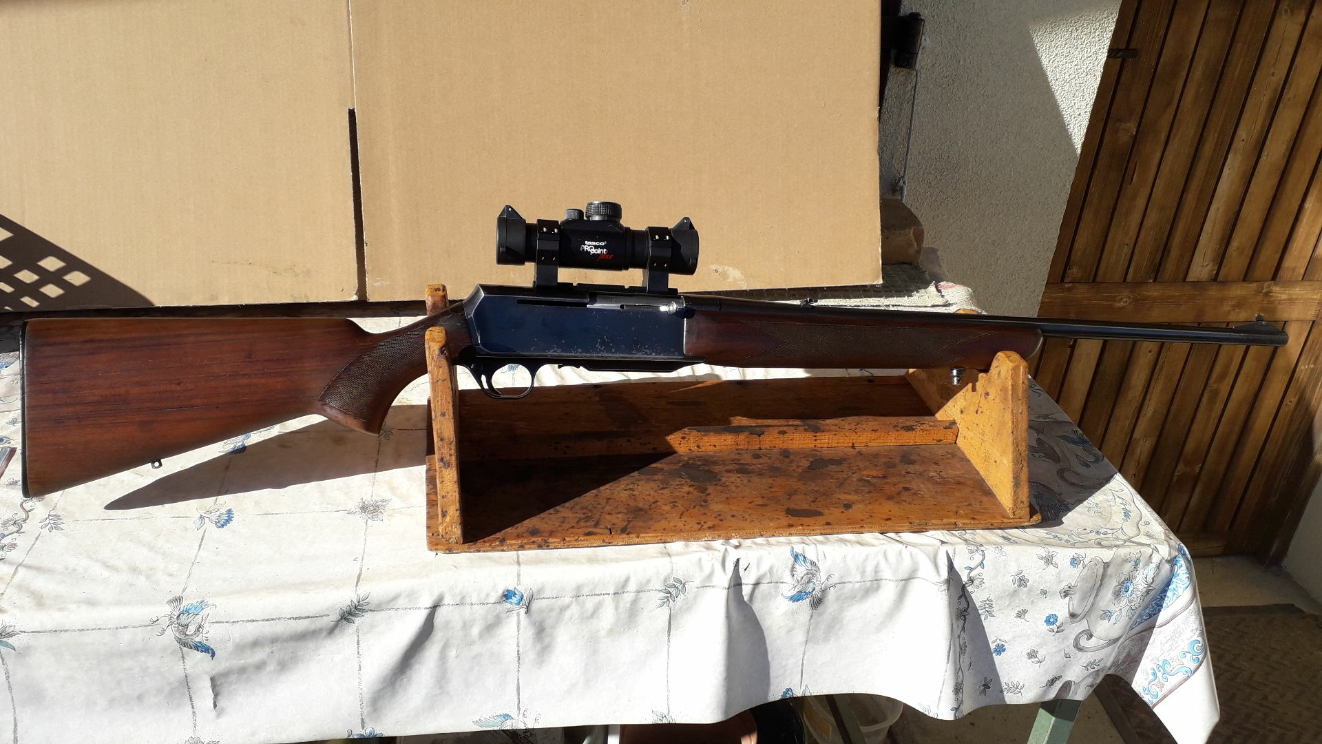 Carabine BROWNING BAR MK1 Acier Occasion , Modèle Affut équipé d'un rail et du point rouge TASCO ProPoint PLUS .