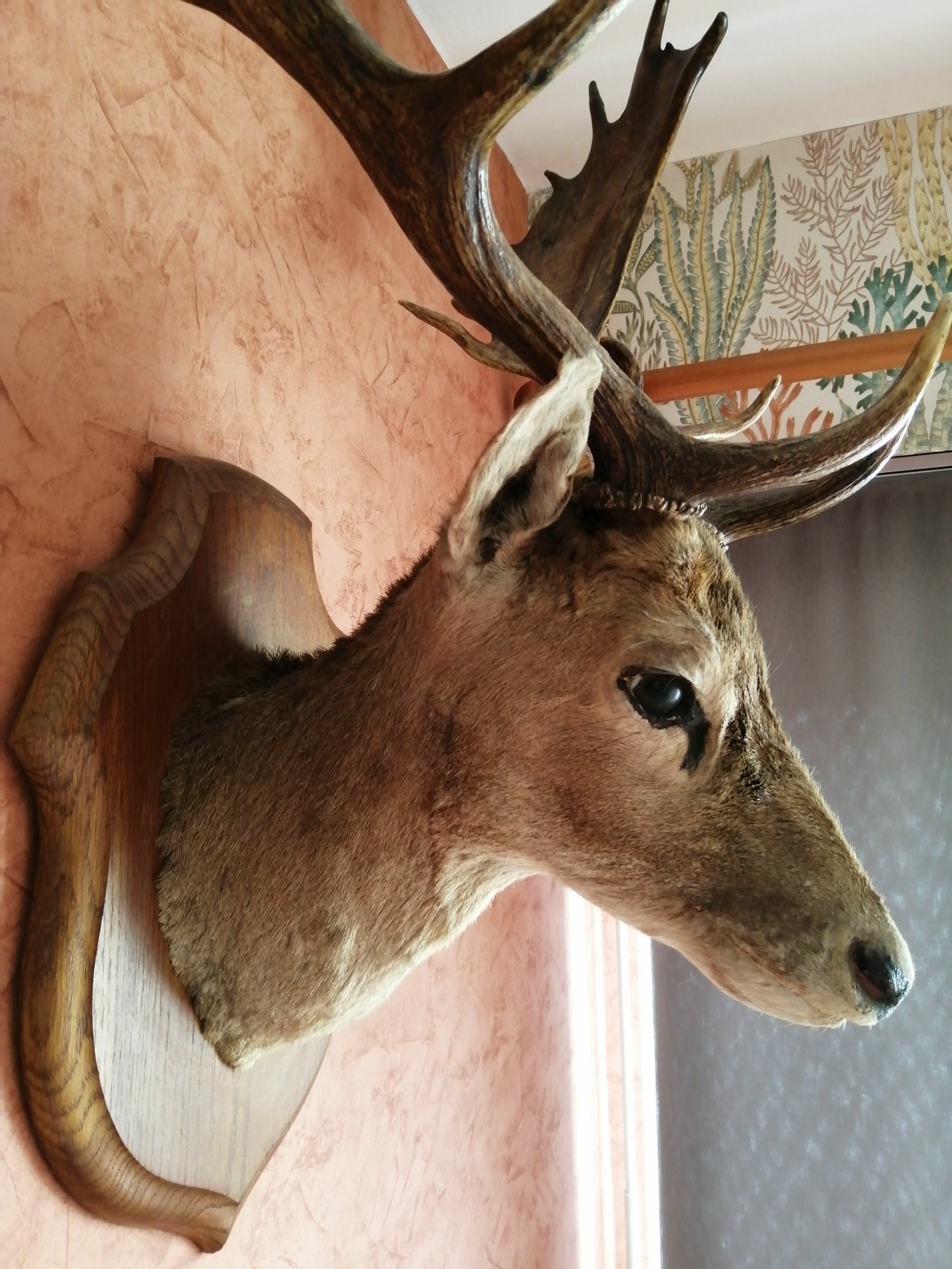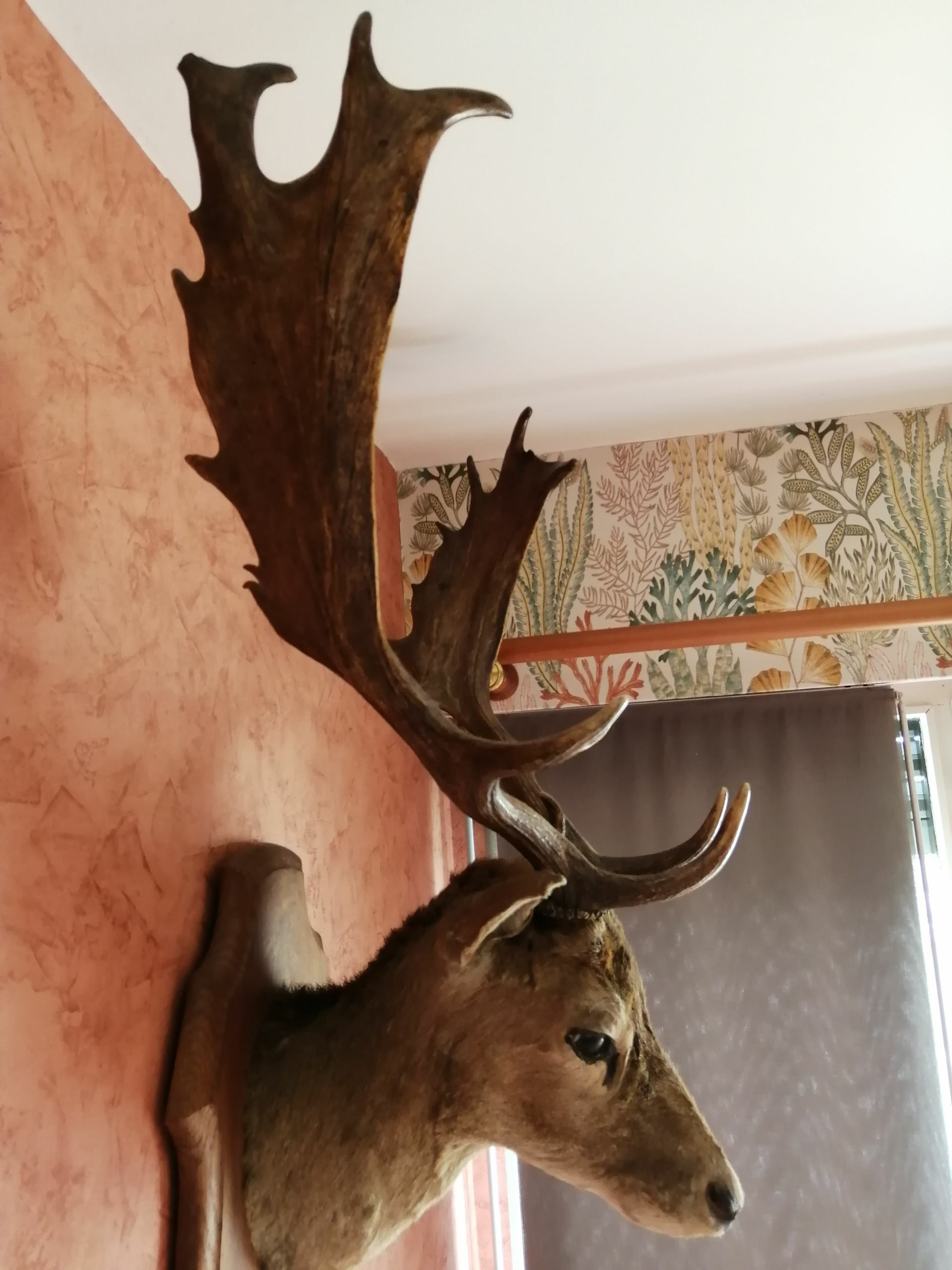Tête de Daim mâle adulte, il possède de jolies paumures bien développées avec plusieurs pointes.