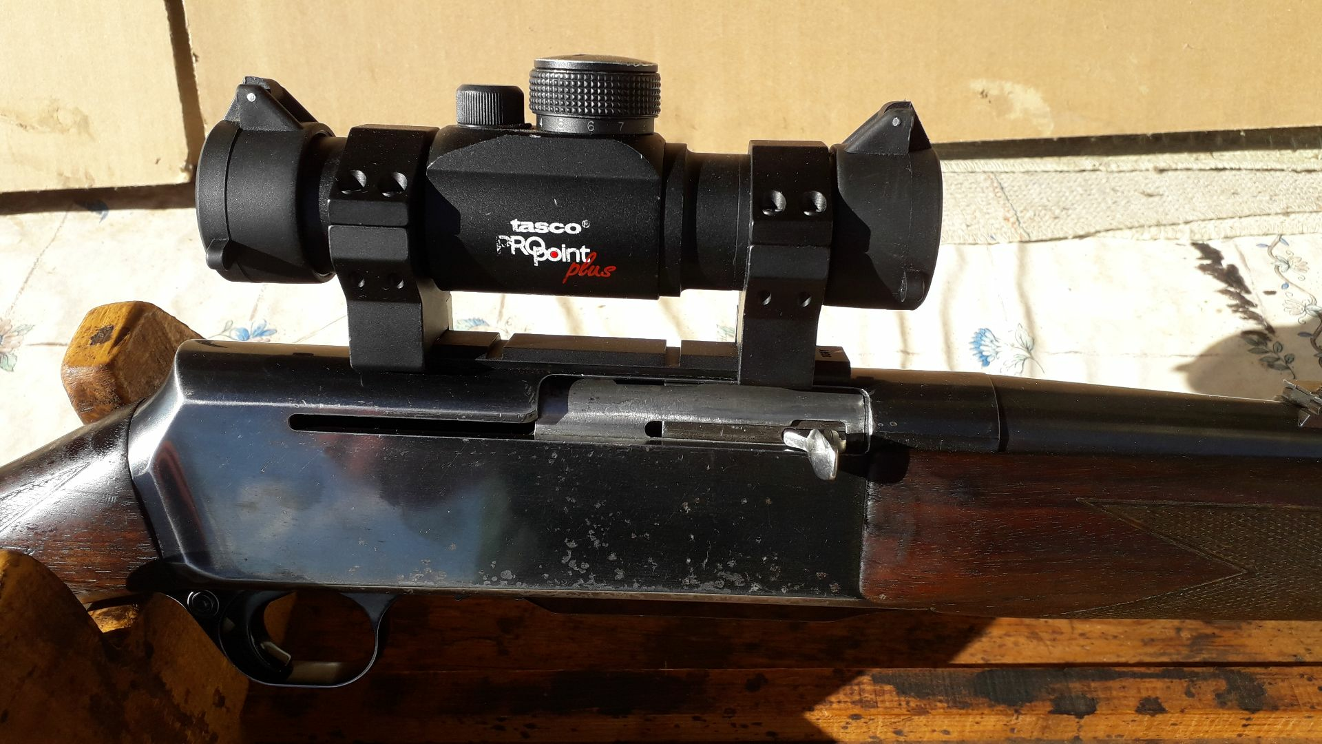 Carabine BROWNING BAR MK1 Acier Occasion , Modèle Affut équipé d'un rail et du point rouge TASCO ProPoint PLUS .