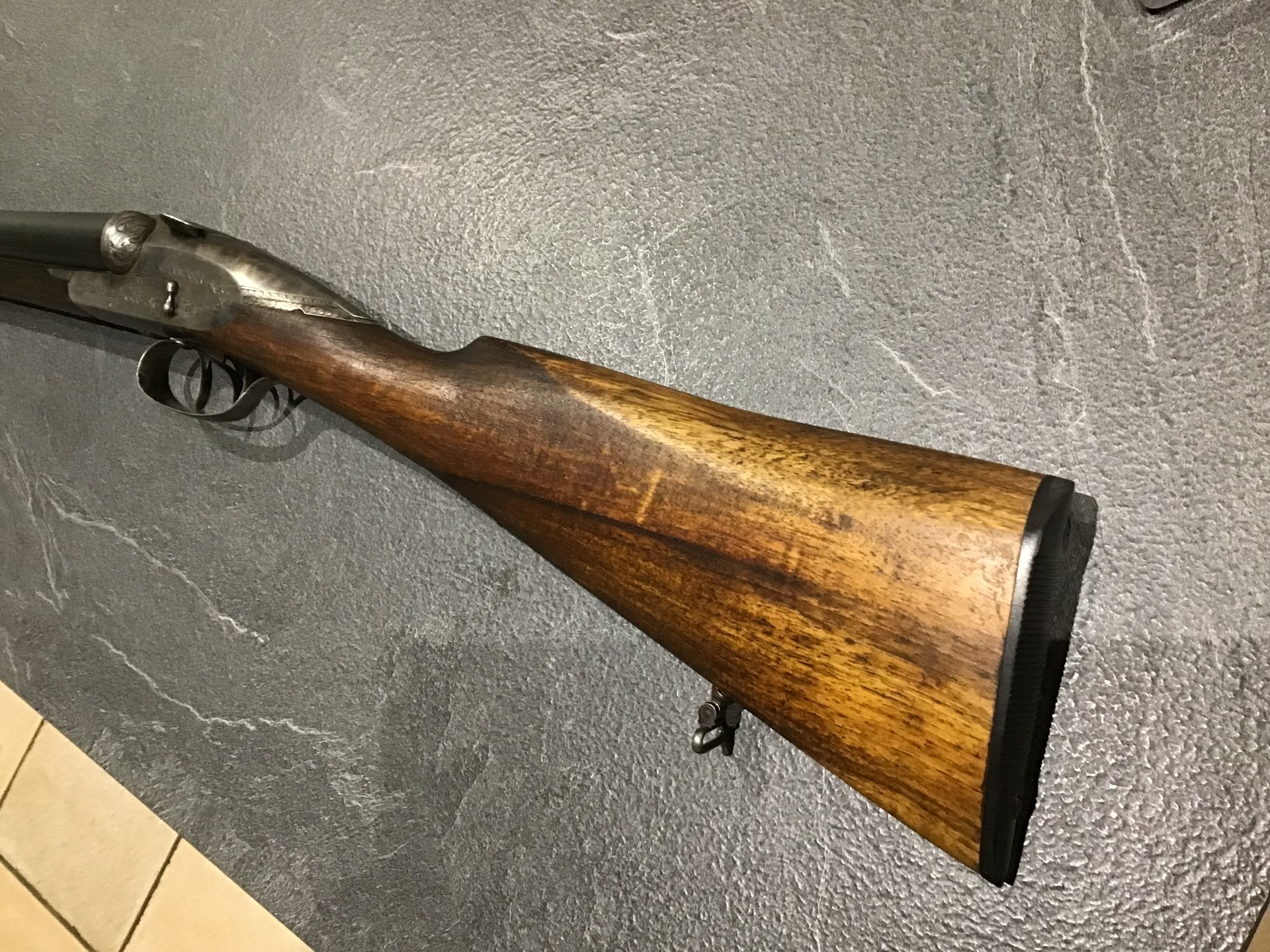 Fusil juxtaposé Charlin , calibre 12 . Crosse légèrement creusée , facilite l’épaulé. Revisé par professionnel.